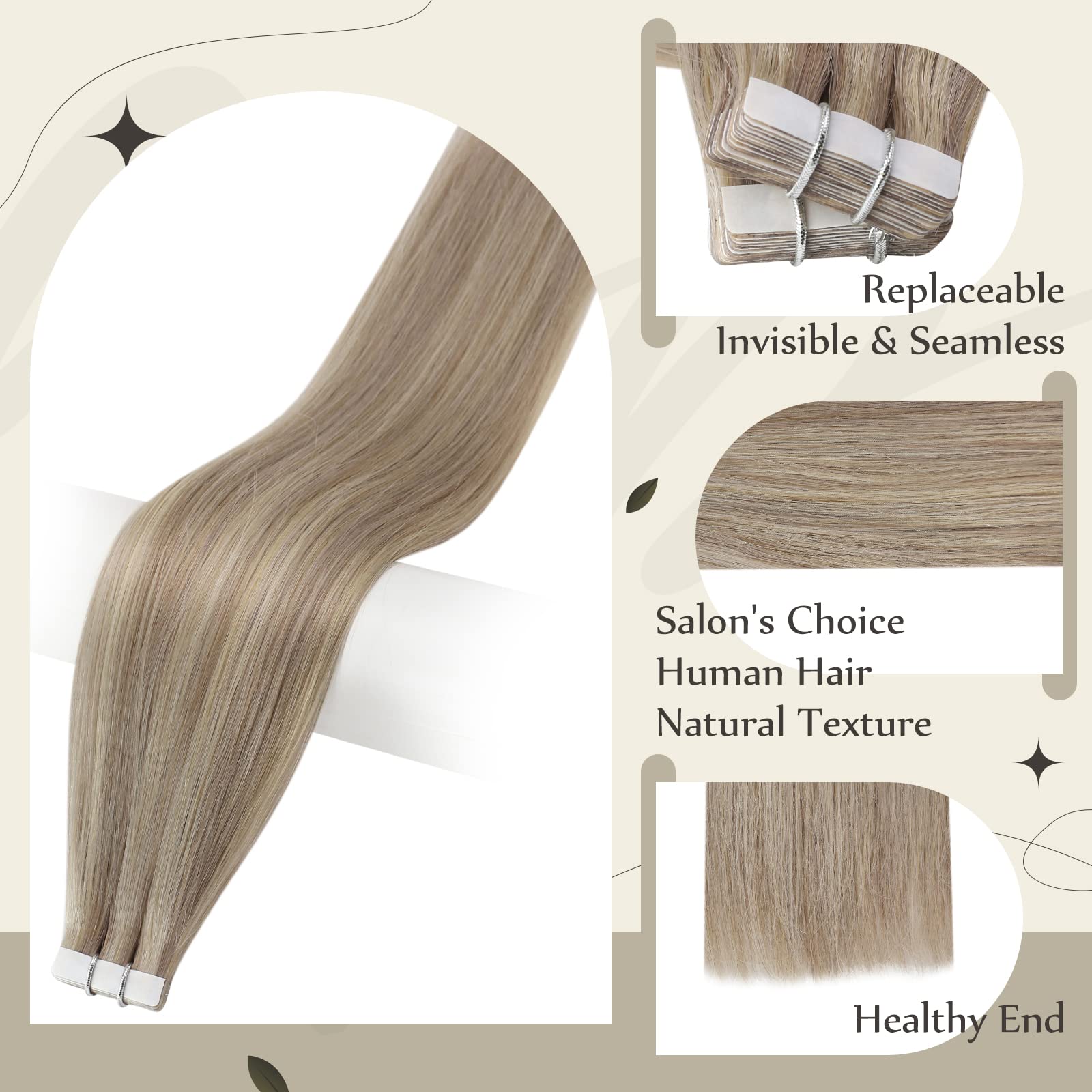 Full Shine Tape in Hair Extensions Human Hair 18 Highlight 613 Blonde Tape Ins Hair 18Inch Seamless Skin Weft Adhesive Tape on Real Human Hair